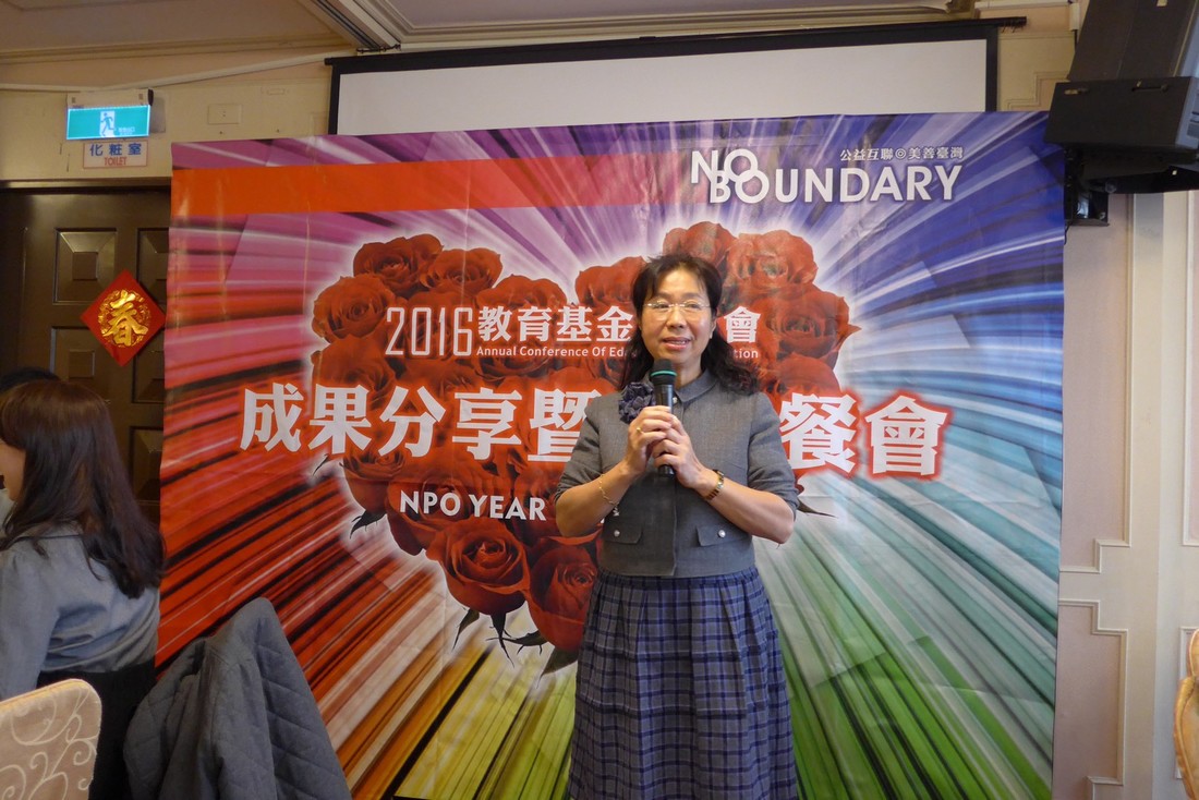 「2016年教育基金會年會-感恩餐會」於12月27日中午12點於立法院康園餐廳﹝台北市濟南路1段1號﹞舉行,教育部終身教育司司長黃月麗及教育基金會年會籌備委員近70人與會。黃司長感謝總召及各籌委們的付出,同時表示希望透過每年年會,讓教育基金會成為社會的力量。 餐會活動首先針對年會各組工作成果進行報告-年會參加人數共計390人,報導媒體家數共 8家,報導則數共11則,問卷調查滿意度達97%,對年會相關之建議將作為明年度辦理參考。緊接著欣賞年會成果影片及舉行熱烈的摸彩活動。年會總召集人研揚文教基金會黃慧美執行長,代表年會籌備委員會感謝大家的出席,並期望透過大家的參與合作,讓明年的年會活動能更加精彩。