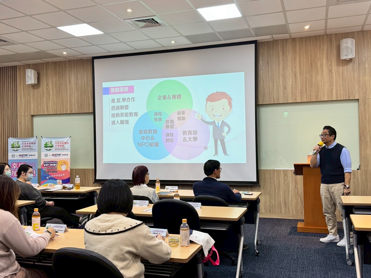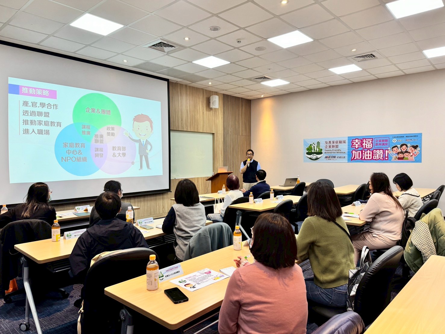研揚文教基金會2022年起結合教育部、台師大、新北市家庭教育中心資源,推動『友善家庭職場企業聯盟計畫』期間獲得熱烈迴響,為擴大邀請新企業共同推廣。基金會於2025年3月21日﹝三﹞下午15:30,假研揚科技會議室舉行『成果分享暨2025計畫說明會』,共11家企業(臺灣金山電子、台北慈濟醫院、立德電子、瑞立登、磊山保險、香港商捷時、臺安醫院、輔信科技、臺大癌醫、萬芳醫院、鴻佰科技)共同與會。為讓企業對於整個計畫執行有更完整的瞭解,首先由研揚文教基金會執行長楊煥晨分享2024年成果分享。並說明2025年計畫推動內容,讓與會企業對於計畫內容有更多瞭解。 2022年至2024年共有31家企業加入,共舉辦95場次講座,7場次假日學校親子課程,共計4075人次參與系列活動。未來更有效串連臺北、新北、桃園三縣市家庭教育資源建立課程模組,連結家庭教育中心加入聯盟推廣建立在地推動模組,服務進入企業並連結同仁需求。『友善家庭職場企業聯盟計畫』期待以企業為主體透過產官學合作推廣家庭教育,以企業聯盟之創意模式,將家庭教育融入企業文化,打造友善家庭職場。