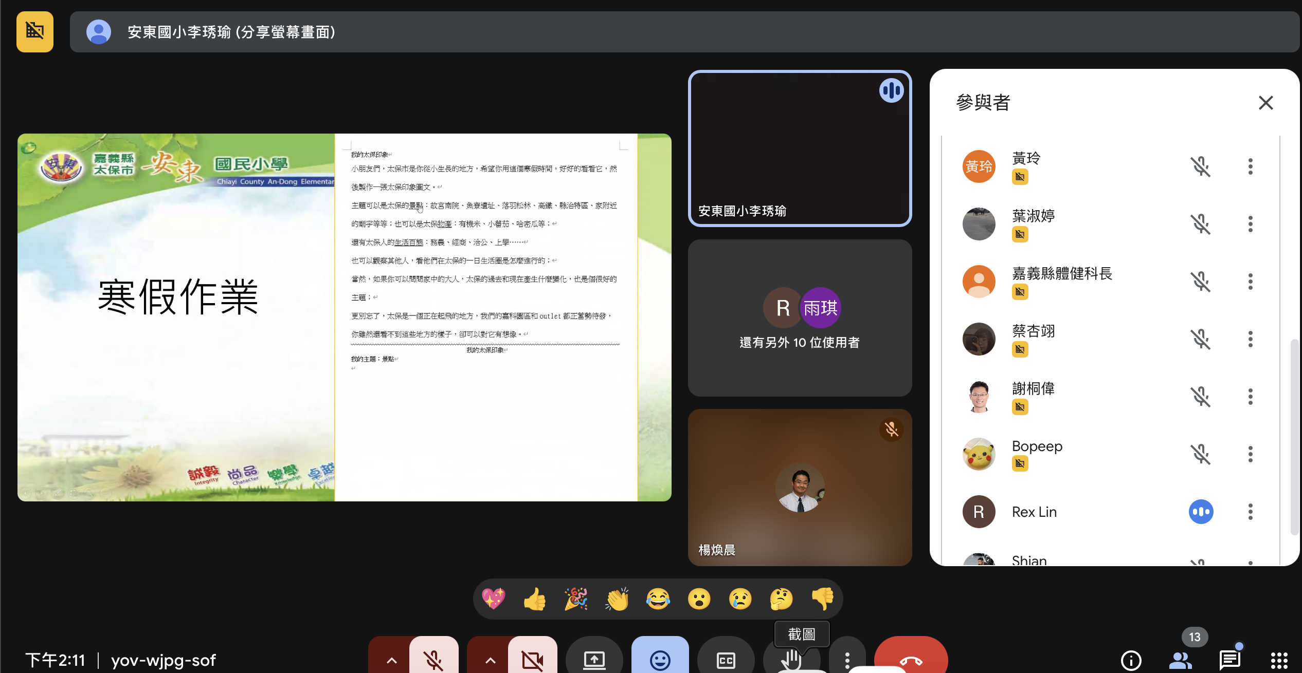 2025嘉義縣【環境台灣-環境教育推廣計畫】由研揚科技、醫揚科技贊助,研揚文教基金會共同推動,為讓嘉義縣各國小瞭解計畫內容,特於6月6日(五)下午1時30分至3時,透過 Google Meet 平台舉辦計畫線上說明會,並特別邀請安東國小李琇瑜主任,分享學校過往參與本計畫之執行經驗。 說明會首先由研揚文教基金會進行簡報,針對本年度「環境台灣」計畫五大主題活動進行逐一說明。接著,由2023年執行學校之一的安東國小李琇瑜主任,分享其校園實踐經驗,具體說明如何將計畫提供之教學資源與展覽內容融入日常課程與校園環境,協助學生建立環境意識並發展實踐能力,協助與會師長對整體計畫形成更完整的認識。此外,基金會亦分享了嘉義縣與雲林縣歷年執行學校的延伸教學活動範例,例如:結合社區踏查的環境探索課程、以主題展覽為核心的跨領域教案設計、以及透過學生導覽深化學習成果等。這些精選案例展現計畫延伸應用的多元可能性,供學校參考與後續教學規劃之用。 本次說明會也針對計畫申請方式與提案注意事項進行詳細說明。2025年度計畫將以提案甄選方式進行,預計遴選數所國小執行為期一年的環境教育推廣計畫,鼓勵學校依據自身特色與需求設計實踐方案。 「環境台灣」計畫持續以主題展方式,將環境教育資源導入偏鄉校園,結合看見‧齊柏林基金會之影像教育資源與研揚文教基金會的整體設計規劃,期盼透過豐富多元的學習體驗,引導嘉義學子對環境議題產生更深層的理解與關懷。藉由本次說明會,期能協助各校深入掌握計畫精神,攜手推動環境教育向下扎根,持續培育具備永續素養的下一代。