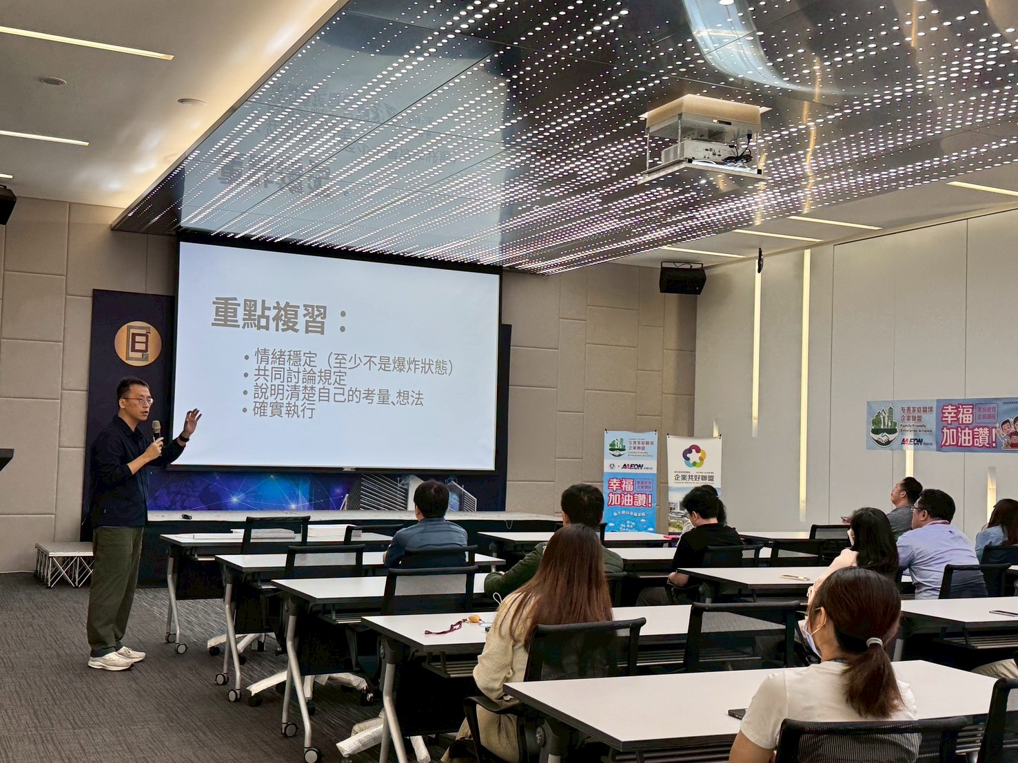 由新北市經濟發展局、研揚文教基金會與寶高智慧園區廠商攜手合作,於2024年5月正式發起「寶高智慧產業園區企業共好聯盟」。透過新北市經發局提供優質場地,並由研揚文教基金會統籌規劃,攜手園區企業推動以「藝文園區」、「友善家庭」、「公益互聯」三大主軸為核心的共好模式,致力打造一個結合文化、人文與公益精神的智慧園區新典範。 為擴大園區同仁對家庭教育的參與與重視,研揚文教基金會自5月至7月間,結合教育部與新北市家庭教育中心資源,推動「寶高園區友善家庭月系列活動」。活動內容涵蓋午間的「幸福加油讚」主題講座、週末假期的「假日學校」親子共學課程,並與技嘉教育基金會、明維教育基金會攜手合作,舉辦別具溫度的單身聯誼活動《緣來是你》,貼近園區青年員工的生活需求,創造更多正向連結。 家庭月系列活動第三場講座《3C世代的親子相處錦囊》於6月17日假新店寶高智慧園區一樓國際會議廳舉行,特別邀請新北市家庭教育中心優質講師——楊淯惇老師主講。講座中,楊老師從實務經驗出發,引導家長理解孩子使用3C產品背後的心理動機,並解析家中常見的四種教養方式:權威式(高支持、高控制)、獨裁式、寬容式與忽略式。透過互動式演練與案例分析,幫助家長掌握與孩子溝通的技巧,學會建立合理的家庭3C使用規則,重新找回親子互動中的信任與連結。 「寶高園區企業共好聯盟」結合研揚文教基金會長年於藝文推廣、家庭教育與公益參與的深厚經驗,讓我們在「藝文園區」、「友善家庭」、「公益互聯」三大主軸下,攜手共創企業共好、生活共融的美麗人生! 由新北市經濟發展局、研揚文教基金會與寶高智慧園區廠商攜手合作,於2024年5月正式發起「寶高智慧產業園區企業共好聯盟」。透過新北市經發局提供優質場地,並由研揚文教基金會統籌規劃,攜手園區企業推動以「藝文園區」、「友善家庭」、「公益互聯」三大主軸為核心的共好模式,致力打造一個結合文化、人文與公益精神的智慧園區新典範。 為擴大園區同仁對家庭教育的參與與重視,研揚文教基金會自5月至7月間,結合教育部與新北市家庭教育中心資源,推動「寶高園區友善家庭月系列活動」。活動內容涵蓋午間的「幸福加油讚」主題講座、週末假期的「假日學校」親子共學課程,並與技嘉教育基金會、明維教育基金會攜手合作,舉辦別具溫度的單身聯誼活動《緣來是你》,貼近園區青年員工的生活需求,創造更多正向連結。 家庭月系列活動第三場講座《3C世代的親子相處錦囊》於6月17日假新店寶高智慧園區一樓國際會議廳舉行,特別邀請新北市家庭教育中心優質講師——楊淯惇老師主講。講座中,楊老師從實務經驗出發,引導家長理解孩子使用3C產品背後的心理動機,並解析家中常見的四種教養方式:權威式(高支持、高控制)、獨裁式、寬容式與忽略式。透過互動式演練與案例分析,幫助家長掌握與孩子溝通的技巧,學會建立合理的家庭3C使用規則,重新找回親子互動中的信任與連結。 「寶高園區企業共好聯盟」結合研揚文教基金會長年於藝文推廣、家庭教育與公益參與的深厚經驗,讓我們在「藝文園區」、「友善家庭」、「公益互聯」三大主軸下,攜手共創企業共好、生活共融的美麗人生!