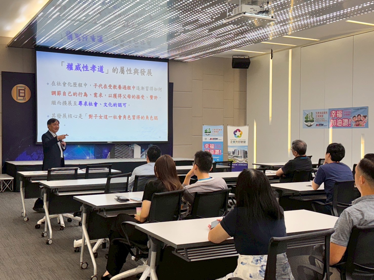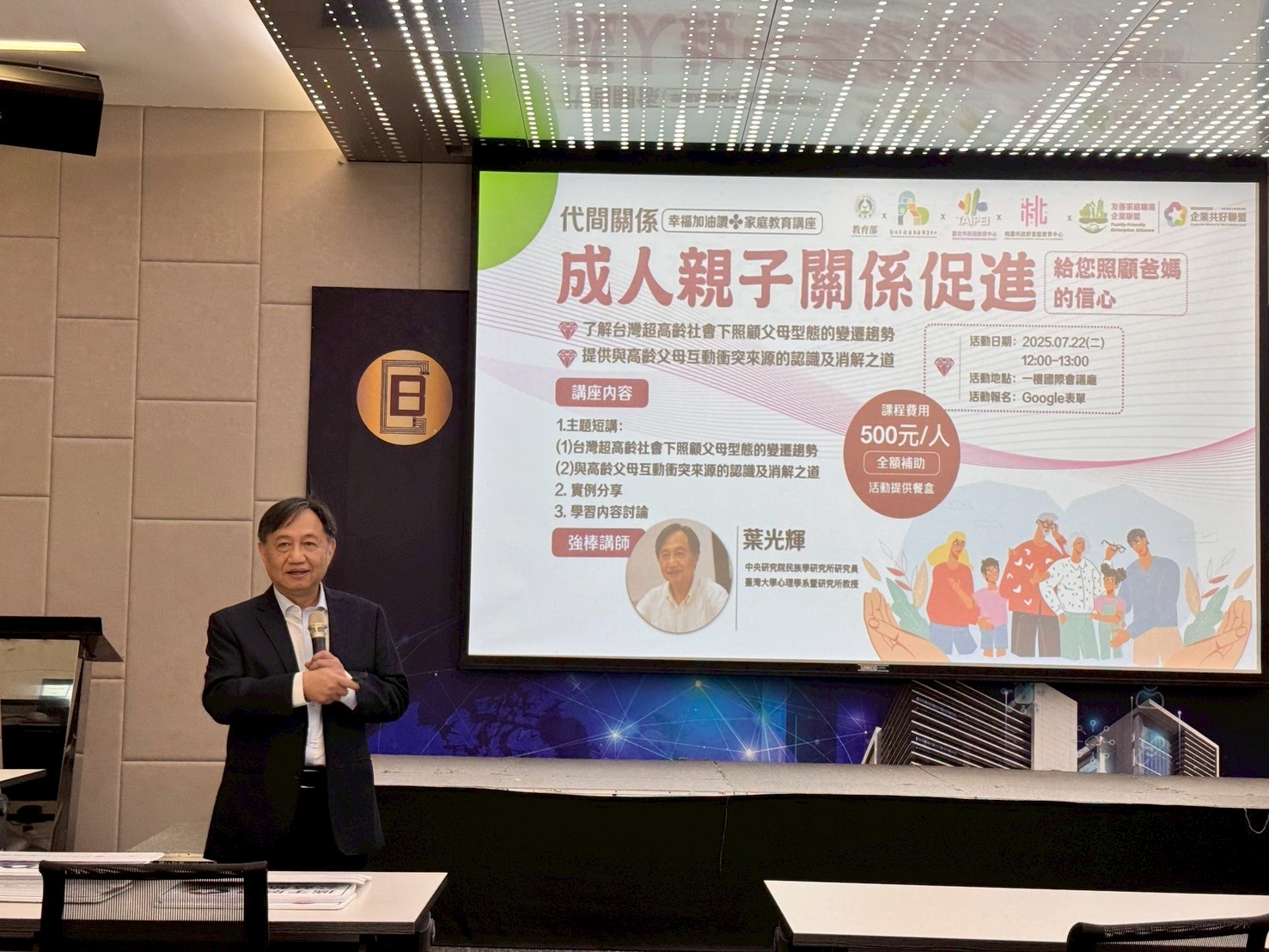 為擴大園區員工對家庭教育的參與與關注,研揚文教基金會於5至7月期間,結合教育部與新北市家庭教育中心資源,規劃推動「寶高園區友善家庭月系列活動」。本系列活動包含午間「幸福加油讚」主題講座、週末假期的親子「假日學校」共學課程,以及與技嘉教育基金會、明維教育基金會合作的單身聯誼活動《緣來是你》,展現企業對同仁多元需求的貼心關懷。 系列活動第四場講座《成人關係促進-給您照顧爸媽的信心》於7月22日,在新店寶高智慧園區一樓國際會議廳溫馨登場,吸引眾多同仁熱情參與。本場講座特別邀請中央研究院葉光輝教授蒞臨分享,以專業且生動的方式引導大家認識「如何面對照顧高齡父母的挑戰」。葉教授不僅深入淺出分析照顧壓力來源,更提出三大準備方向,幫助成人子女建立照顧信心。他也提出「外包孝道」的觀念,協助聽眾在維持孝道精神的同時,合理分配個人與家庭資源,避免照顧過勞。此外,葉教授分享了四種舒緩照顧情緒的小技巧,讓現場同仁感到實用且受用良多,講座現場互動熱烈、氣氛溫馨。 藉由本場講座,不僅提升員工對高齡照顧議題的理解,也展現「企業共好聯盟」對員工身心福祉的持續關注與支持。研揚文教基金會長年在藝文推廣、家庭教育與公益參與上的深厚經驗,正透過這系列活動,與園區企業攜手共創友善家庭、共融生活的幸福藍圖。 由新北市經濟發展局、研揚文教基金會與寶高智慧園區廠商共同發起的「寶高智慧產業園區企業共好聯盟」,自2024年5月起正式啟動。該聯盟以「藝文園區」、「友善家庭」、「公益互聯」三大主軸為核心,打造結合文化、人文與公益精神的智慧園區新典範。