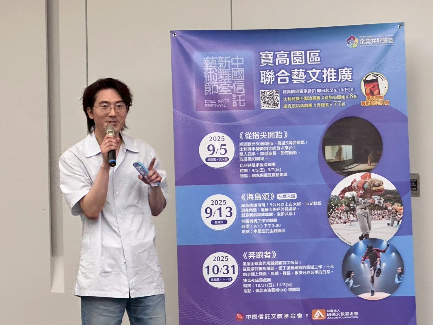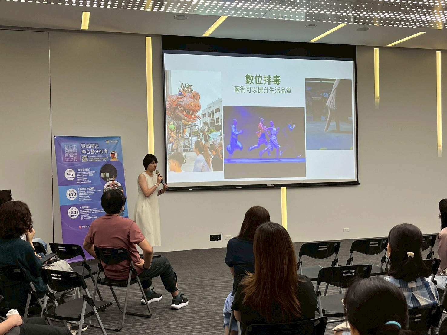 研揚文教基金會與中國信託文教基金會於7月30日在寶高智慧產業園區舉辦寶高園區企業共好聯盟-午間藝術講座,此次特別邀請到OISTAT國際劇場組織—魏婉容執行長,針對今年的「中國信託新舞臺藝術節」,以淺顯易懂的方式分享「當代藝術」。 活動開場由中國信託文教基金會代表介紹藝術節核心精神,接著講座由魏婉容執行長分享介紹首度登上亞洲舞台的節目《少年PI的奇幻漂流》,透過分享當代舞台藝術從現代舞、偶戲、馬戲狂歡到今年度中國信託新舞臺藝術節精彩節目,以「動態臨界點」為主軸,包含適合親子同樂的入門款公益免費場次創意偶戲《海島頌》,魔幻手勢電影劇場《從指尖開始》,到雜耍、馬戲、舞蹈狂歡的《奔跑者》,象徵分秒必爭的日常,多元的表演形式,有嘲諷、有趣味、也像一面鏡子,映照快轉人生。 顛覆傳統對於當代藝術高冷的印象,藉由藝術提升生活品質,也能達到「數位排毒」之效,期望透過藝術節精彩節目,為繁忙生活中按下「暫停鍵」,讓長時間在辦公室久坐、感到疲憊的園區同仁,透過藝術獲得重新啟動的能量。