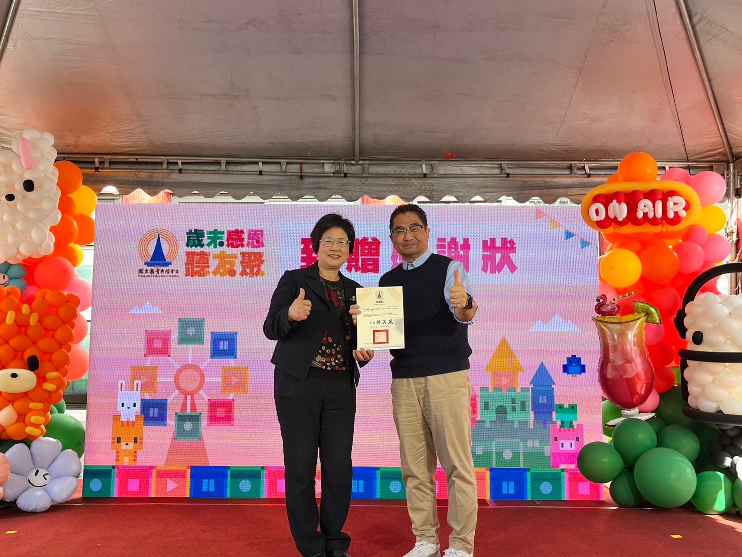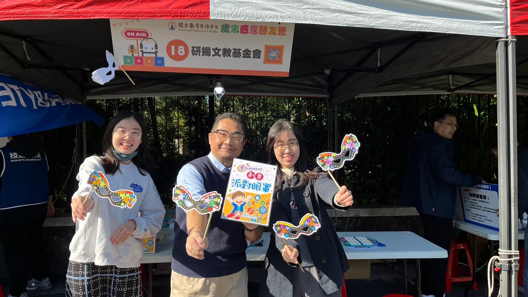 研揚文教基金會於11月30日受邀參與國立教育廣播電臺盛大舉行之歲末感恩聽友聚攤位活動,首先典禮教育廣播電臺黃月麗臺長致贈感謝狀給研揚文教基金會楊煥晨執行長,同步開啟藝術好好玩【彩繪創意舞會眼罩DIY】闖關攤位活動,親子以彩繪創作發揮創意,製作出屬於自己獨一無二的派對眼罩。吸引近150組家庭參與,活動人潮絡繹不絕,最後在大會闖關中抽獎兌換好禮劃下完美句點。透過創意DIY讓現場父母子女、祖孫和樂融融的歡聚在一起,度過美好的假日時光。