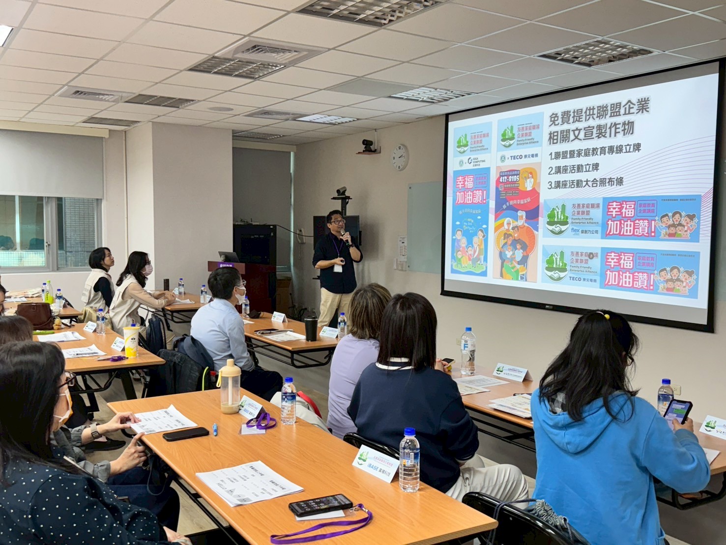 研揚文教基金會結合教育部、臺師大、家庭教育中心資源,推動『友善家庭職場企業聯盟計畫』。獲得廣大迴響,2025年擴大計畫成效結合在地資源邀請台北市家庭教育中心、桃園市家庭教育中心與新北市家庭教育中心與聯盟企業共同推廣。基金會於2025年4月15日﹝二﹞下午14:30,於東碩資訊會議室舉行2024成果分享暨2025計畫課程說明會,共28家企業線上及實體共同與會。首先由研揚文教基金會執行長楊煥晨分享2024年成果分享。並說明2025年細部推動內容,北北桃提供豐富多元的課表,共提供6大領域:情感關係4堂、婚姻關係3堂、親子關係10堂、情緒教育5堂 ,家庭資源管理4堂、代間關係6堂,共計32堂課可挑選。企業年度可直行三堂課, 並可以免費參與假日學校系列課程。 為讓企業對於整個課程挑選有完整的了解,邀請新北市家教中心以三步驟協助窗口更快挑選符合企業需求, 第二階段透過新北、台北、桃園 三縣市分組座談方式,讓在地企業各縣市家教中心接起橋樑,,期待以企業為主體透過產官學合作推廣家庭教育,以企業聯盟之創意模式,將家庭教育融入企業文化,打造友善家庭職場。